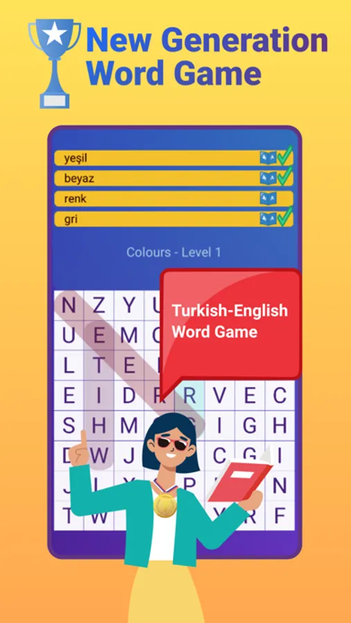 Prof. Turkish Word Search is a new generation cross-language word search game.