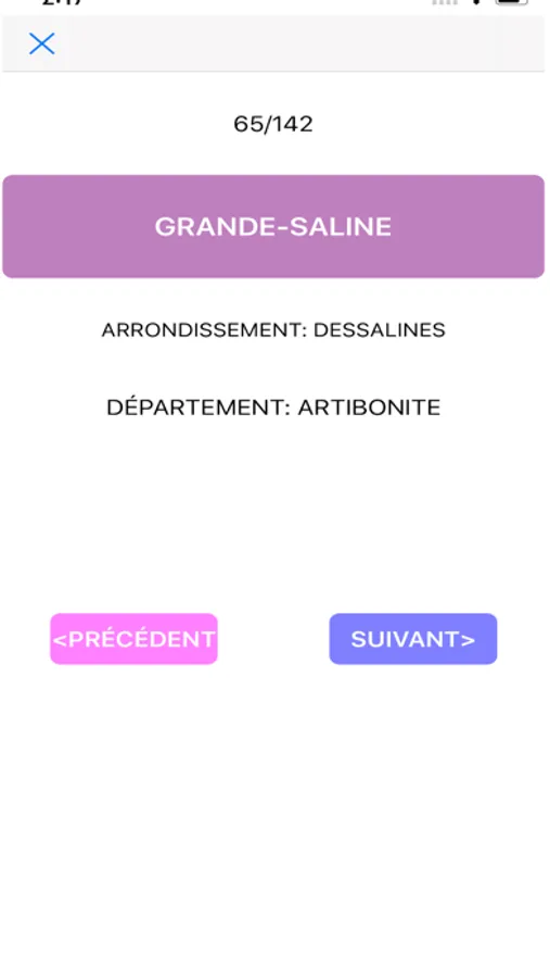 Yon premye pati (RÉVISION) ki pèmèt ou devine nan ki depatman ak awondisman chak komin ye. Ou annik tape sou non komin nan, epi li ba w, menm moman an, depatman an ak awondisman an pou komin sa a.