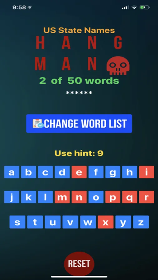 Kid Friendly Hangman has over 1500 words in different categories. No hanging man graphic.