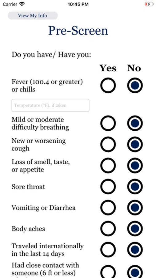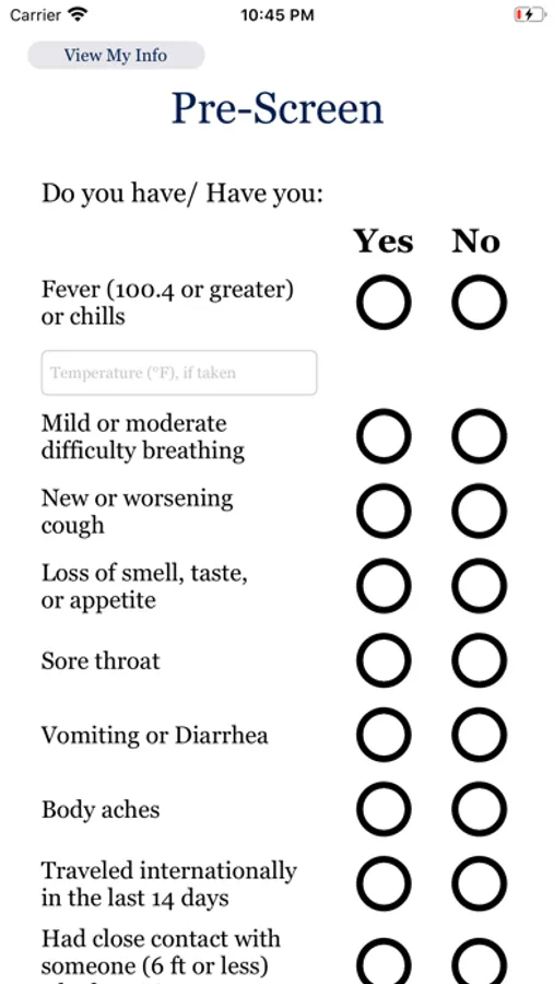 This app is a prescreen for students and staff at Berean Christan High School. Students and staff will fill out this questionnaire in order to enter school every day.