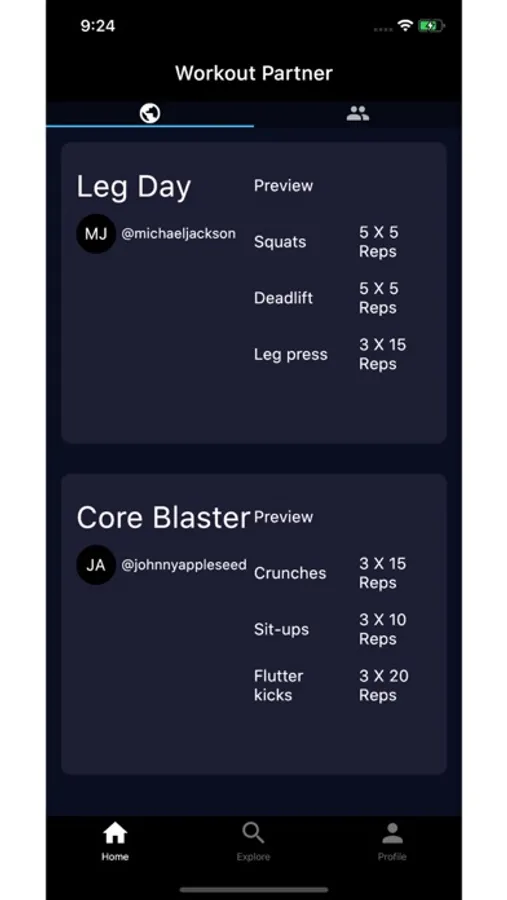 Workout Partner is your fitness companion that you can share your workouts with. See what workouts your friends and other fitness lovers have created and give them a try! Create a series of exercises into a workout and share them for people to follow.