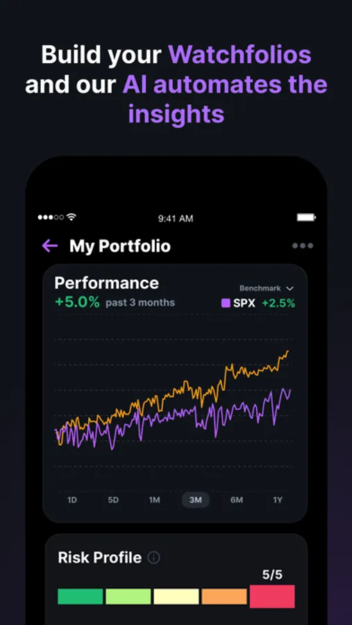 Watchfolio Insights: Group and track the performance of stocks before investing. RAFA's AI engine generates deep insights on all your watchfolios, helping you make informed investment decisions. Share your best ideas with friends and others with one click.