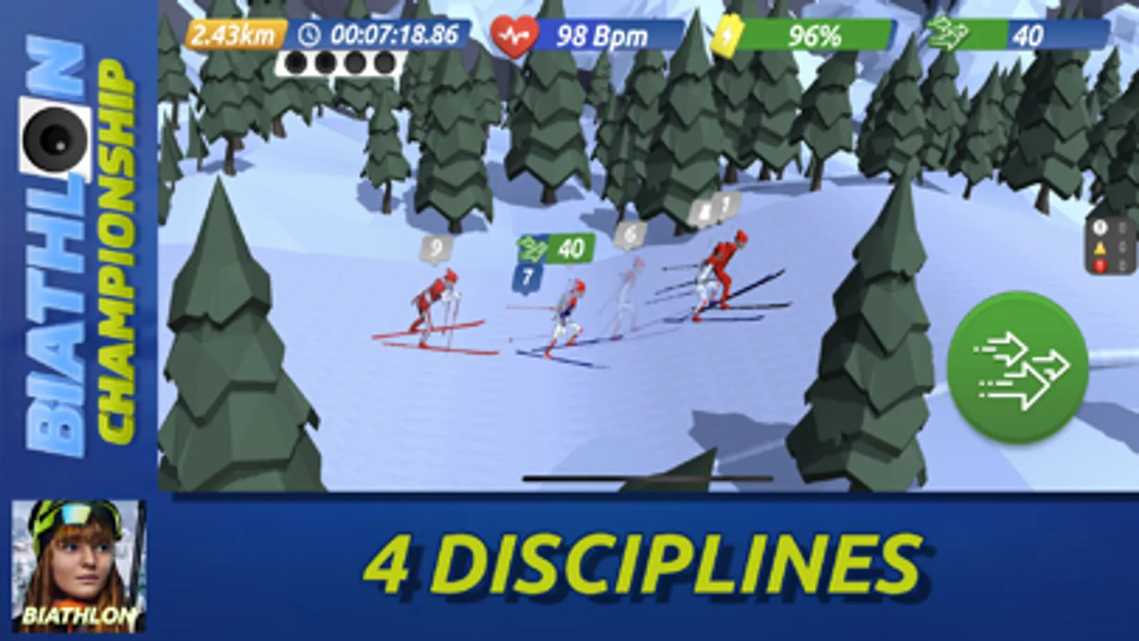 Pick the best equipment and choose the right strategy to conserve the energy of biathlete and to break through the opponents at the right time. Win the competitions, complete tasks individually and with the team.