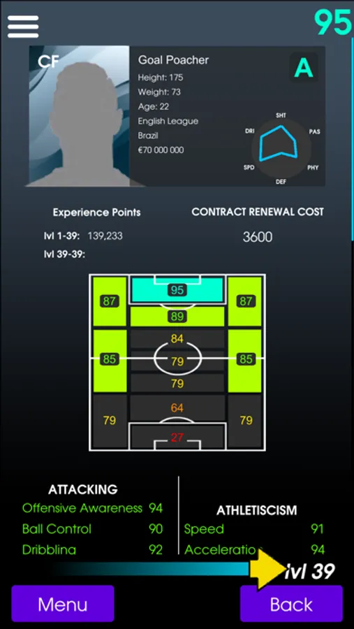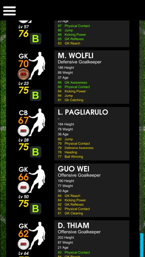 • Keeps track of player condition throughout the season to help you make better decisions on who to level-up.