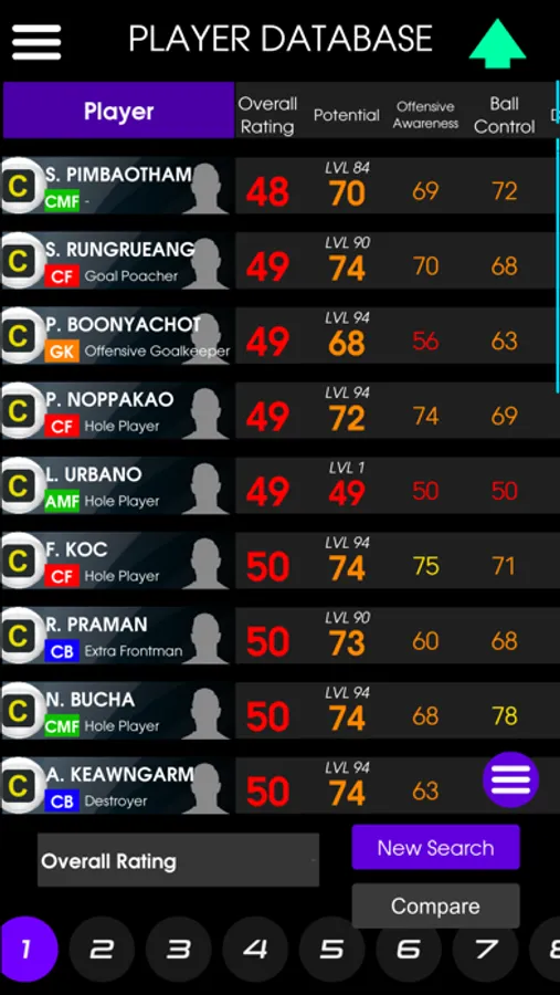 • The ability to search for players using their stats at max level, not just level 1. **PESHUB Pro feature**.