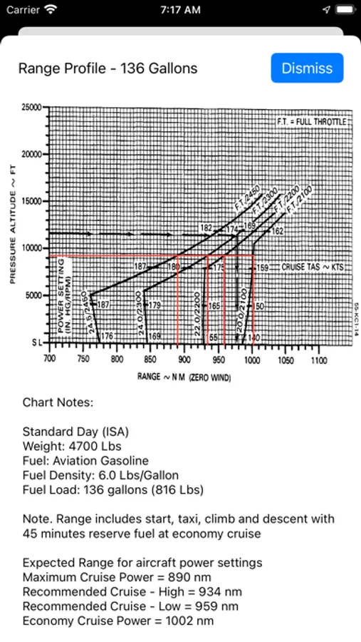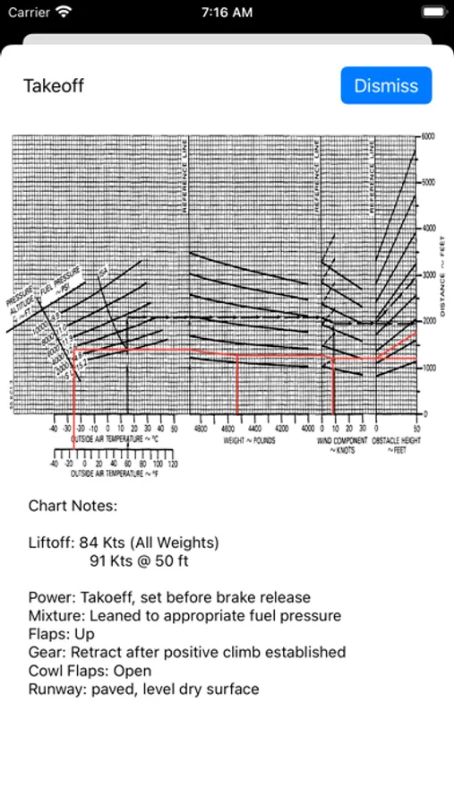 Aero Chart is an aviation chart reading app. After making entries for things like airfield temperature, altitude, altimeter setting, etc, as well as aircraft configuration info, Aero Chart will apply it to chart data taken and coded from the aircraft AFM and make performance calculations for you.