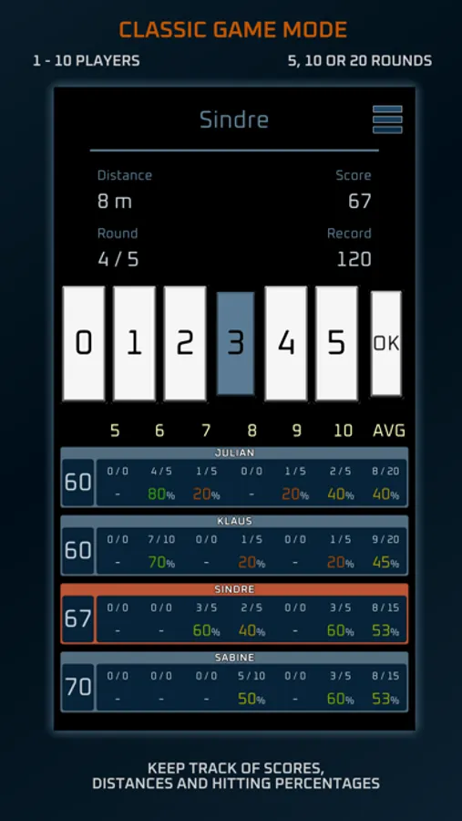 - Depending on how many successful throws you manage to make, the app will tell you which distance to throw from next time its your turn as well as counting your score.