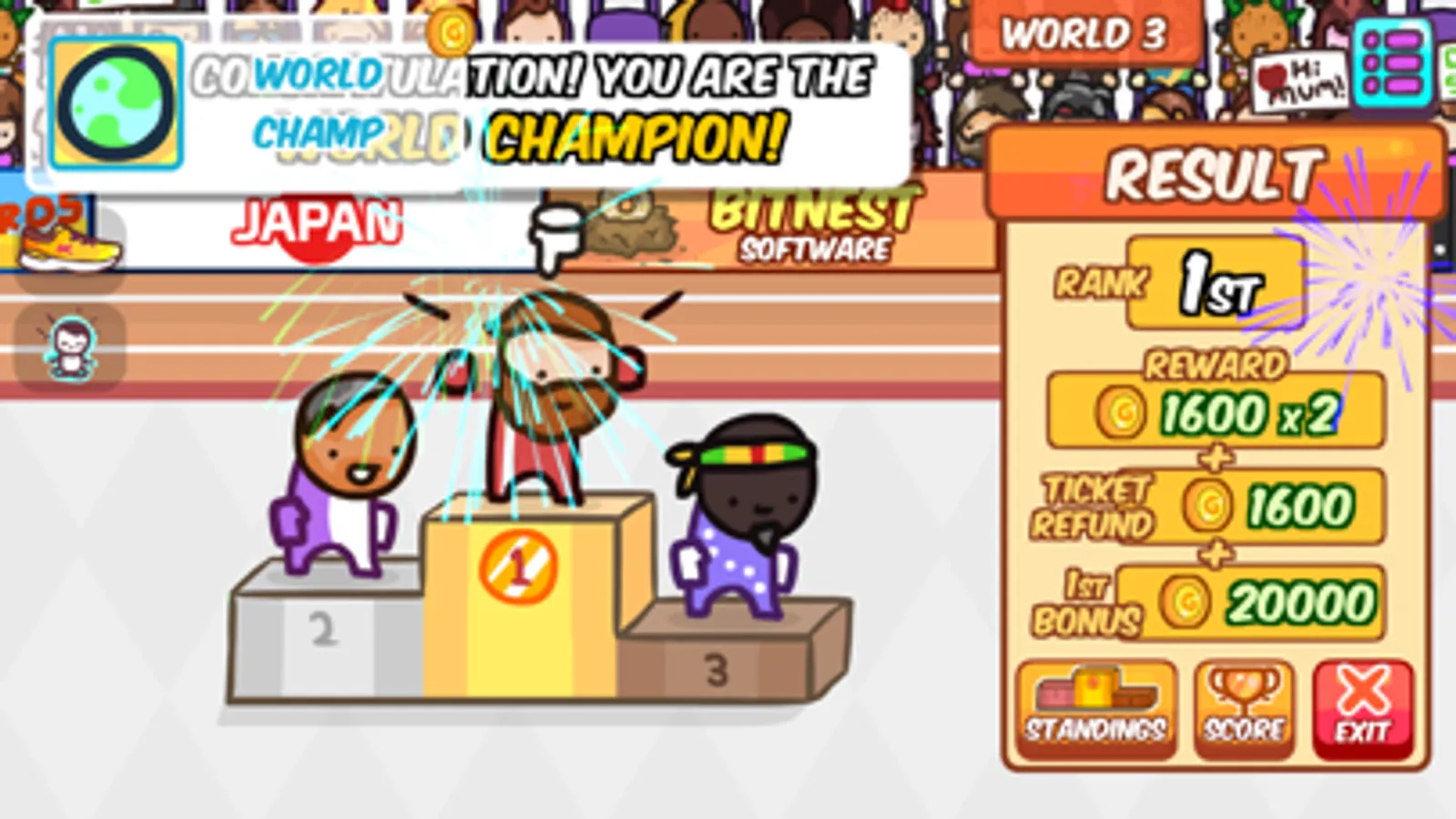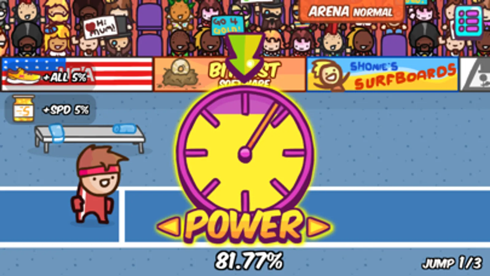 Become the World Champion of Long Jump in this addicting track & field game. Compete in Arena to earn coins, get Upgrades to better your jump, Practice to hone your skills and rise through Career from local to world level to achieve your goal.