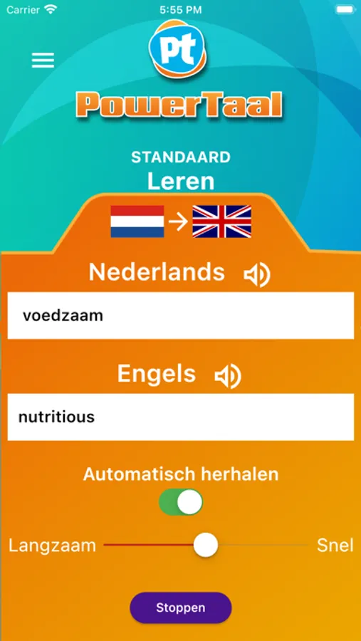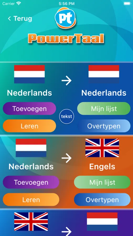 Dé plek om in uw eigen tempo en met uw eigen input een nieuwe taal te leren. Voor elke taal vormen woorden de basis. Leer die woorden hier door ze te lezen, te typen, op te schrijven of en te beluisteren. Door herhaling en diversiteit tijdens de training zal het u makkelijker afgaan dan bij vele andere methodes. U bepaalt zelf het tempo..