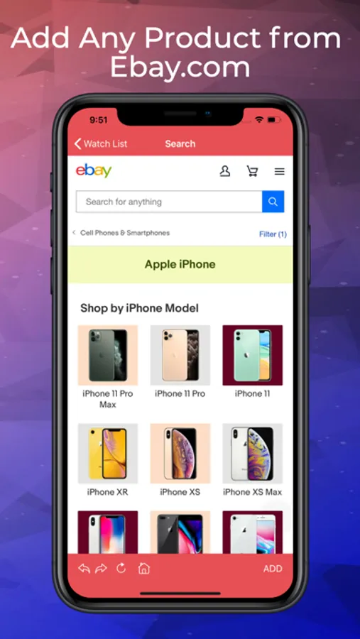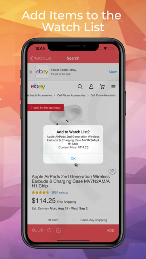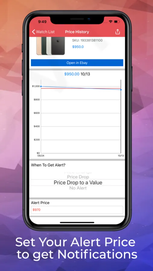 Add products from the Ebay.com website to the watch list and track their prices. You will get notified when the price drops to the price you select.