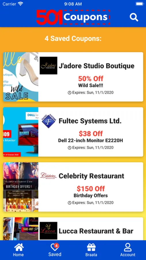 501 Coupon is a mobile application designed to create a hub of merchant coupons in your pocket offering discounts and deals across a wide spectrum of categories from supermarket, pizza, boutique, hotels and many more.