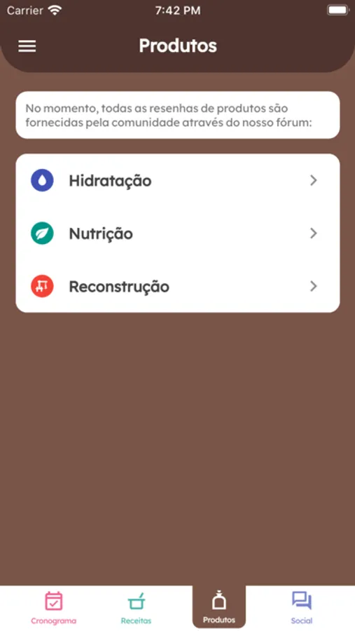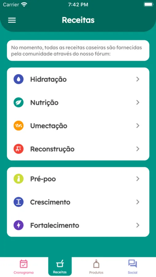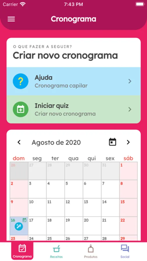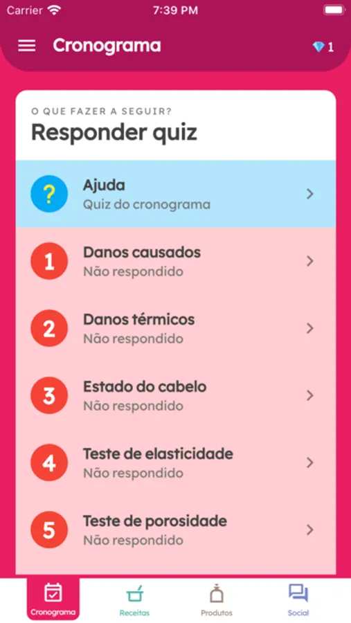 O Meu Diário Capilar cria e gerencia um cronograma capilar especialmente feito para o seu cabelo, baseado em um quiz com perguntas e testes para verificar o estado atual de seu cabelo.