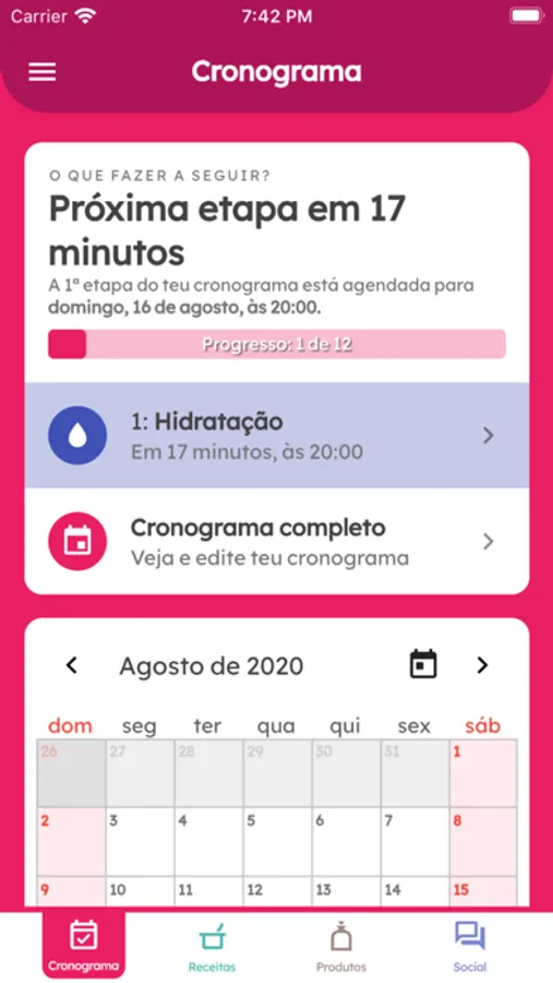 Baseado em suas respostas, um cronograma com etapas de hidratação, nutrição e recuperação será criado para que você possa deixar seu cabelo perfeito.