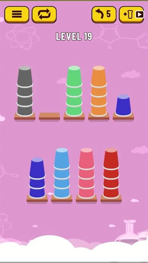 Cup Sort Puzzle is a fun and addictive puzzle game! Try to sort the colored cups in the stacks until all cups with the same color stay in the same stack. A challenging yet relaxing game to exercise your brain!