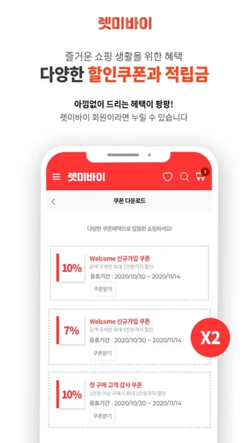 (2) 신규 회원 가입 감사 7% 할인 쿠폰 “2장 드림”