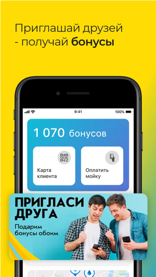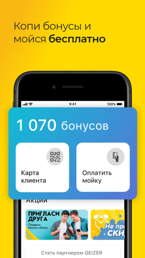 - Get bonuses after every wash and pay up to 100% of the service cost with them.