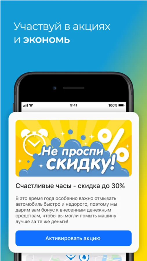 - Participate in promotions, save money on car washes and get additional bonuses and discounts.