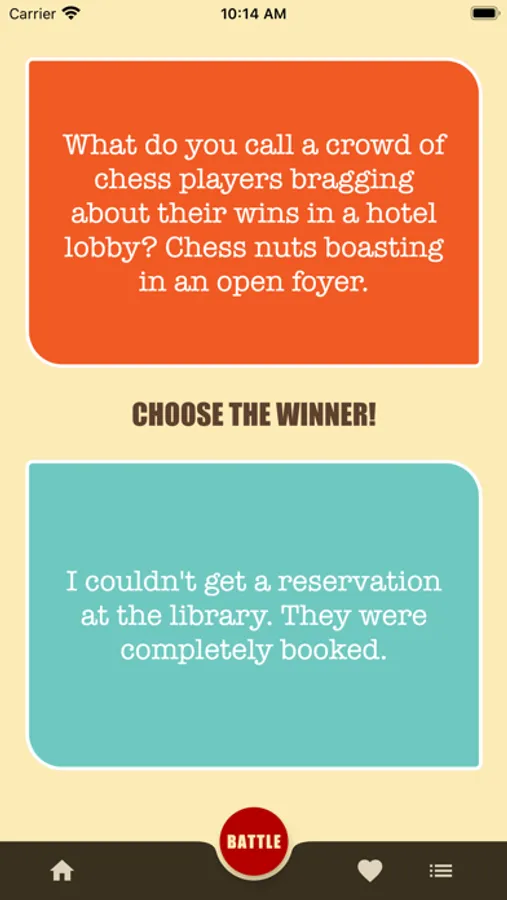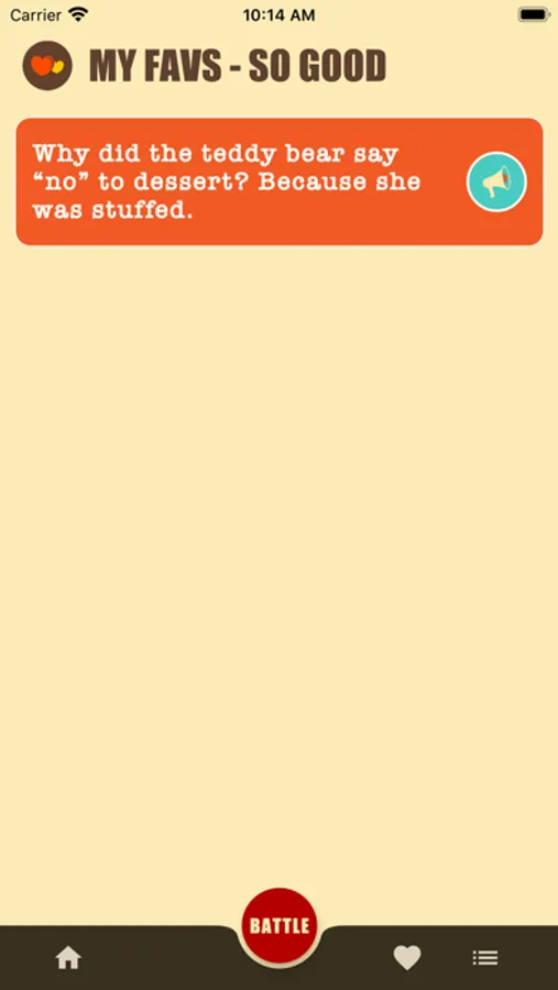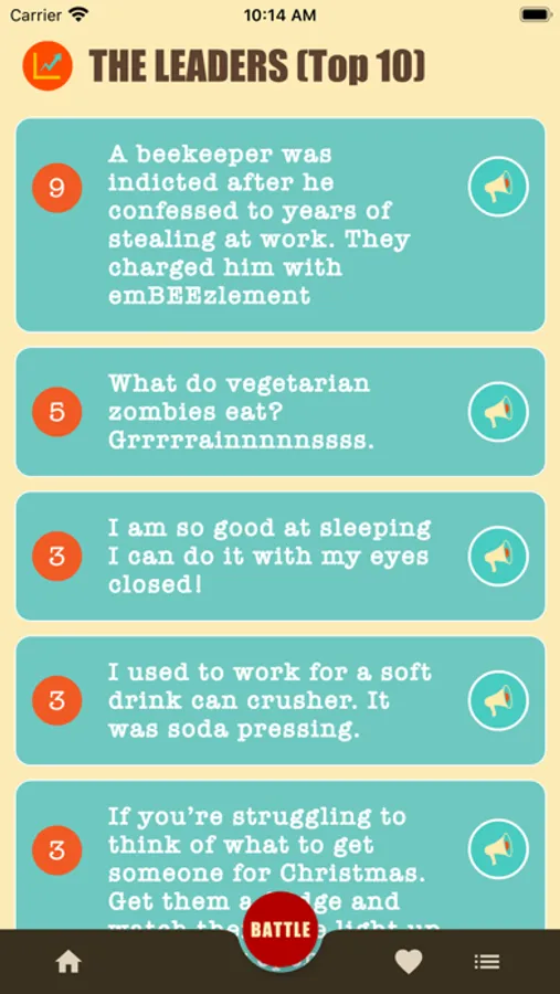 Dad Joke Battle is a fun destination for discovering and voting on "Dad Jokes". By crowd sourcing the voting on each joke, a top 10 list will keep track of the funniest "Dad Jokes" chosen by users of the app.