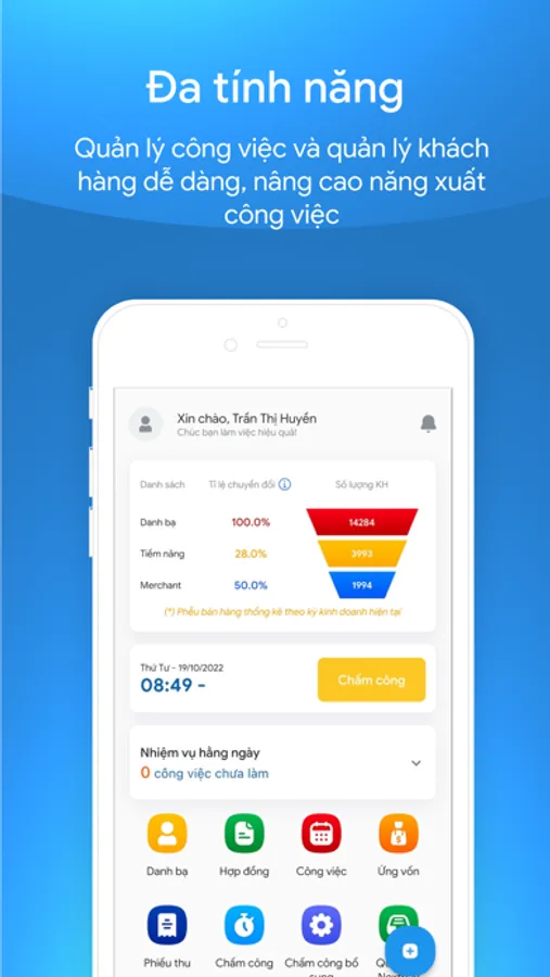 App quản lý nhân viên bán hàng. Bao gồm các tính năng: