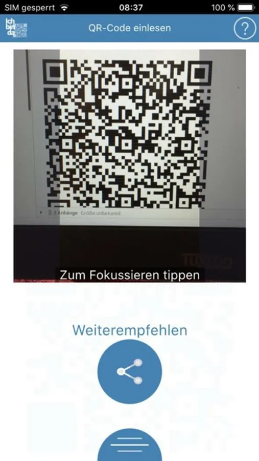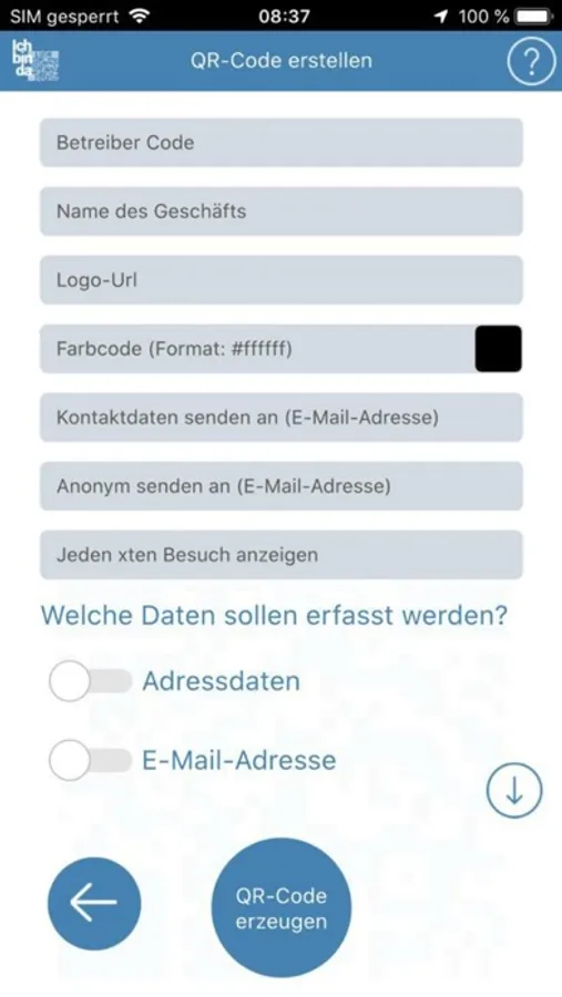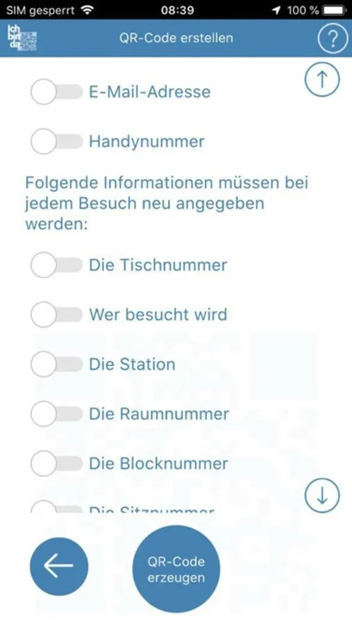 Mittels der App können QR-Codes zur Kontaktdatenerfassung sowohl erstellt als auch gelesen und ausgeführt werden.