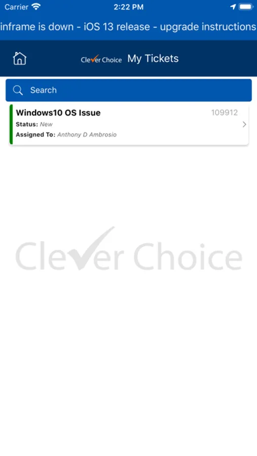 Clever Choice offers your Technicians a seamless Cherwell mobile experience. It’s easy to use interface lets your Technicians interact with Service Requests, Incidents, Problems, Knowledge Articles, Approvals, and any Enterprise Service Management applications.