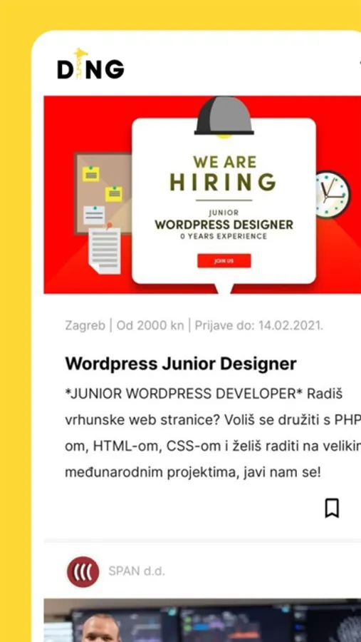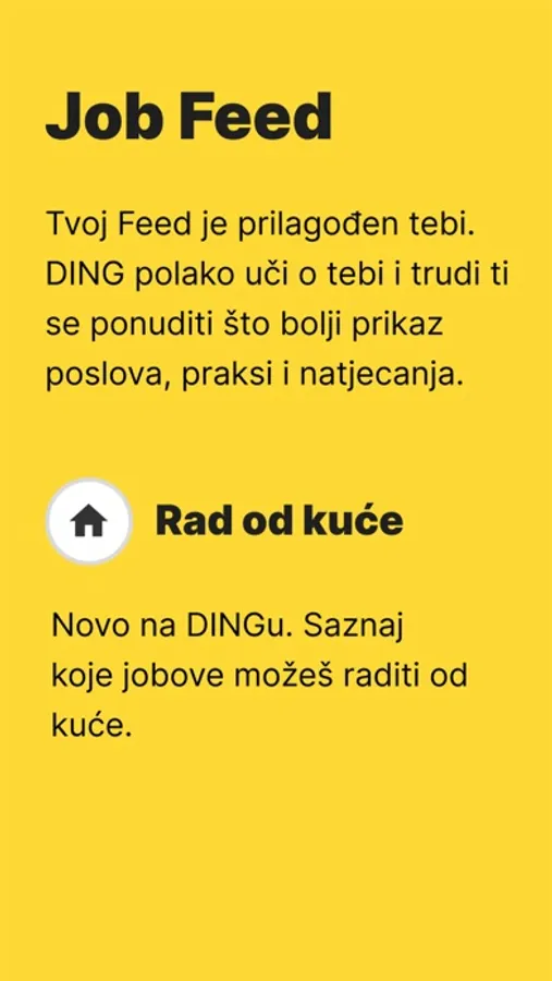 Dosta ti je teorije i želiš malo prakse? Na pravom si mjestu! DING je nova job aplikacija namijenjena samo studentima (i onima koji su to nedavno bili). Na oglase se možeš prijaviti preko našeg messaging sustava i odgovor uskoro stiže - obećajemo! Nema neodgovorenih prijava.