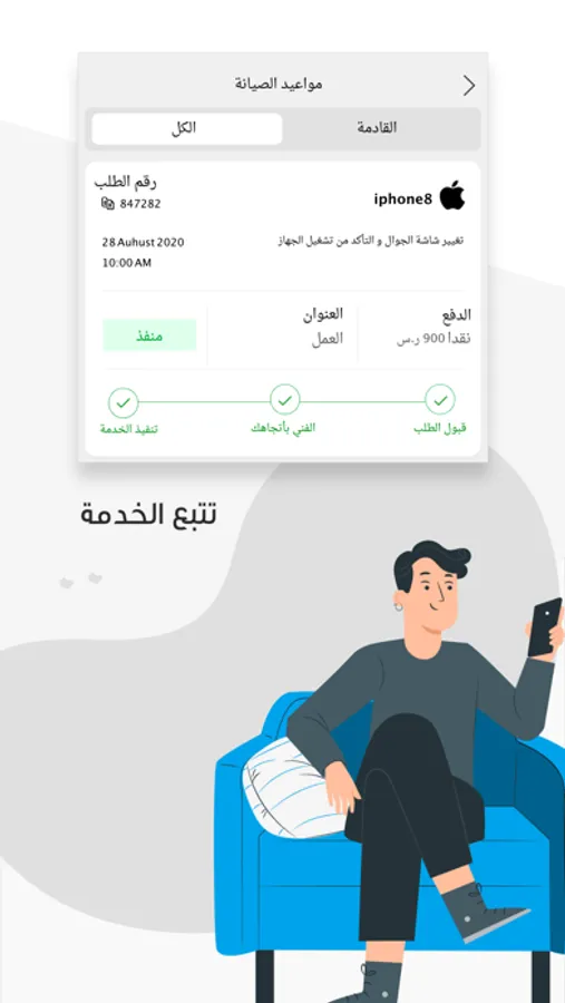 - يستخدم التطبيق موقعك للألتقاء مع فني خبير الصيانة.
