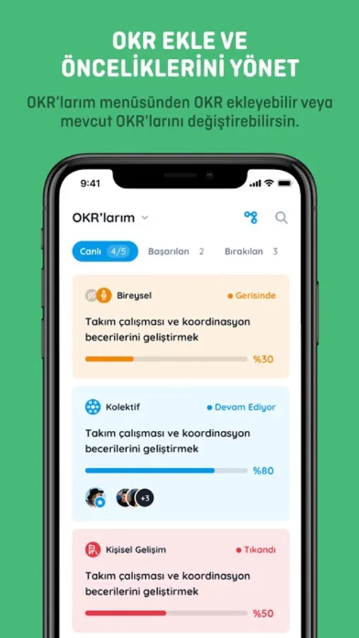 OKR’larının gidişatını takip edebilir ve OKR’larını canlı tutabilirsin.