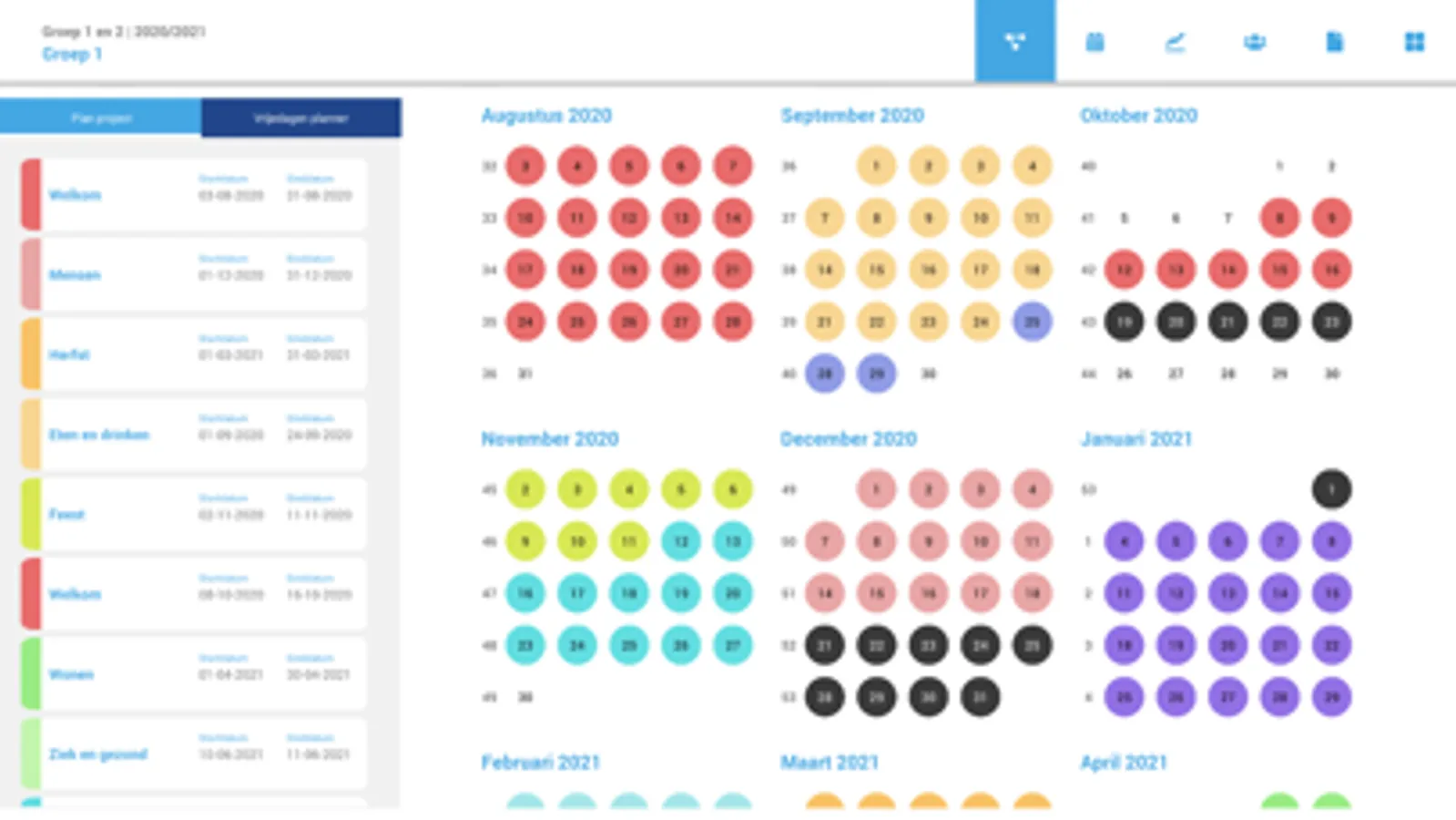 - Effectieve jaar- en weekplanner waarmee je de projecten eenvoudig plant;