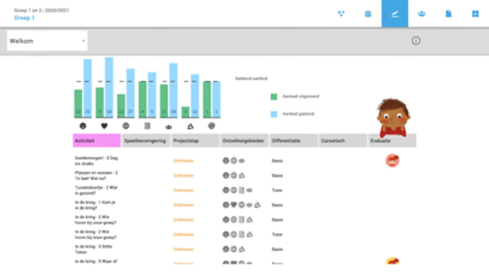 - Holistisch gedifferentieerd aanbod op basis van alle ontwikkelingsgebieden, aansluitend bij de geldende doelen uit het curriculum;