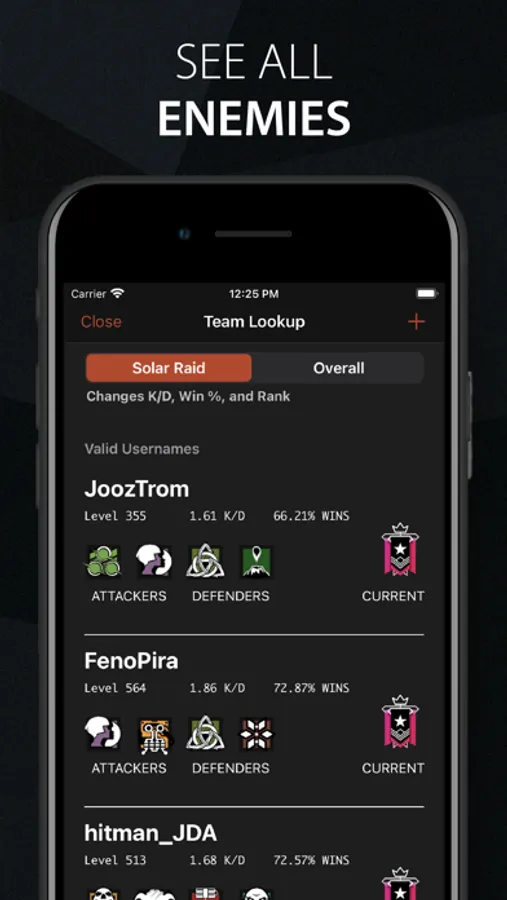 With GameSense, you can use your device's camera to take a picture of the scoreboard while playing Tom Clancy's Rainbow Six® Siege and see your enemies most crucial stats in just two seconds. You can see 2-4 suggested operator bans for competitive gameplay which are entirely based on your opponents stat data! See your enemies K/D ratios, levels, win-%s, current and best ranks, and best operators!