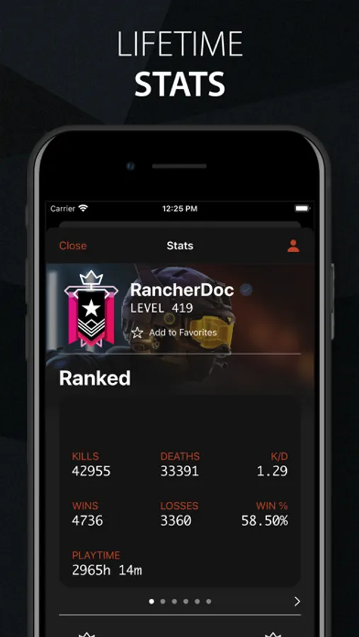 See your most-played operators, see all of your ranked, casual, and unranked stats, and see your seasonal stats and highest ranks earned.