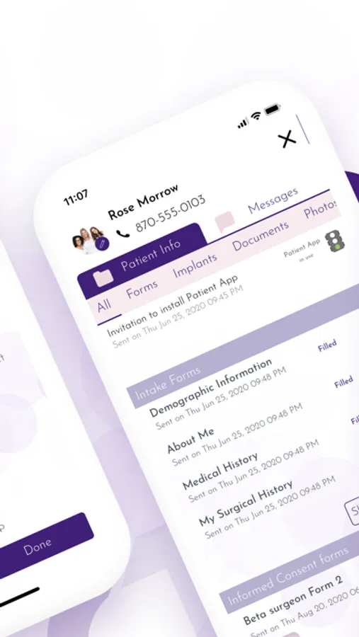 aesthetic one to Share/collect intake and consent forms, take, save, and share photos.