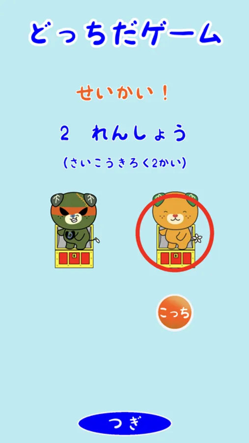 どっちだゲームで、みきゃんがはいっているはこをあててね