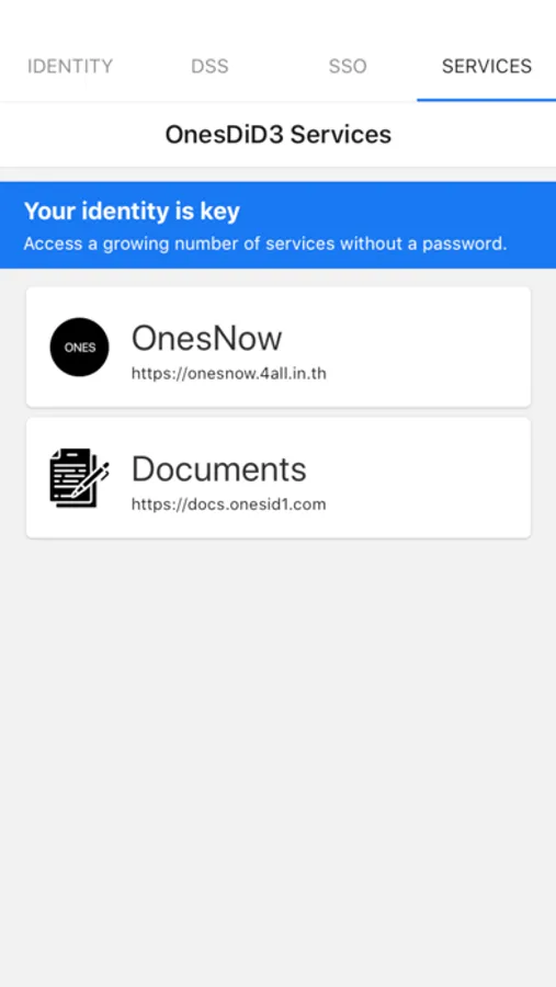 We have already launched 2x brand new services for you to try out your OnesID digital ID. All existing and new integrations are listed under "Services". You can single-sign-on to any of these services, directly on your iPhone. You will be prompted for access in OnesID. You may also visit these sites from your Desktop and login with the convenient "QR-Login".