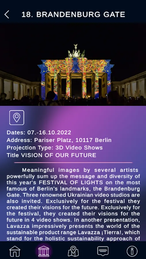 Every year in Fall Berlin becomes the city of light art. The light productions on the world-famous landmarks, monuments, buildings, and squares of the German capital make the FESTIVAL OF LIGHTS one of the most popular light art festivals in the world. Together with national and international artists, the Festival of Lights Team transforms Berlin into one big shining stage – the whole of Berlin lights up! We tell stories, draw attention to what is hidden in the neighborhoods, present cultures and art, transport messages, and themes. Magic moments in Berlin!