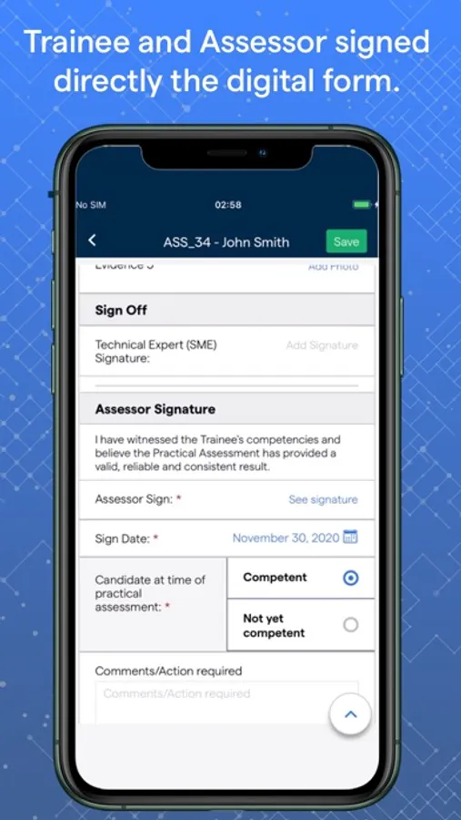Digitise the entire practical field assessment process with INX Assessor. The App is designed to overcome the common challenges of managing practical assessments in the field. Assess all your trainees on site on your mobile device or tablet, even without network. From the form creation to the validation, 100% of the process is made available from mobile devices. Assessments can be carried out in remote locations. The app will auto-synchronise all your forms and speed up assessment review and approval with in-built workflows.