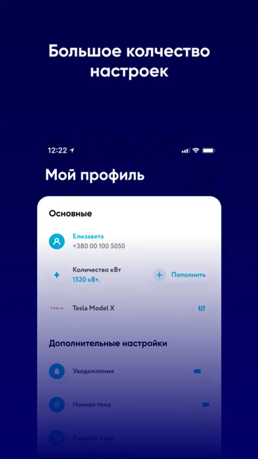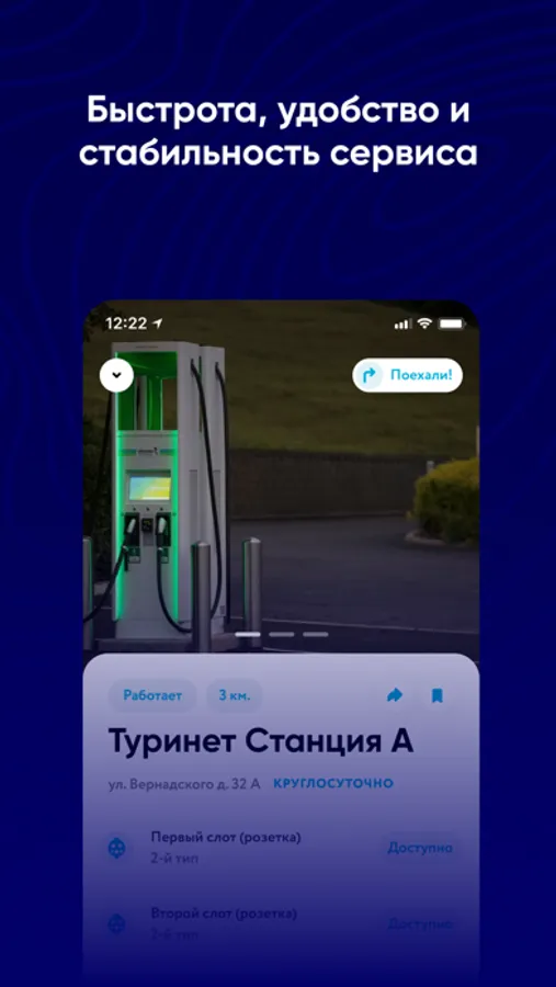 - Отображение статуса зарядной станции и возможность дистанционной резервации ее на определенное время;