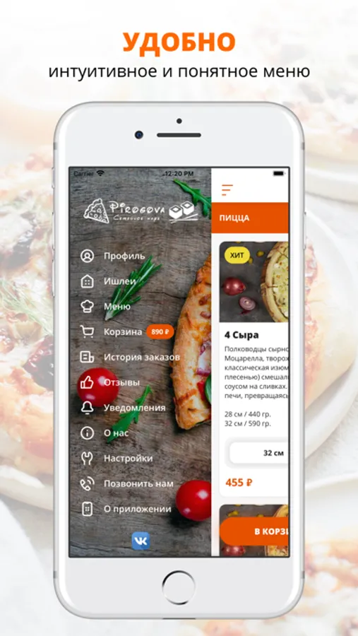 Устанавливайте приложение Pirogova и получайте онлайн-доступ к нашему сервису доставки в любое время и в любом месте.