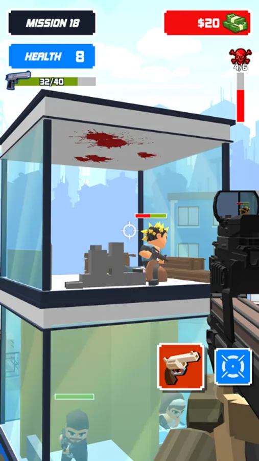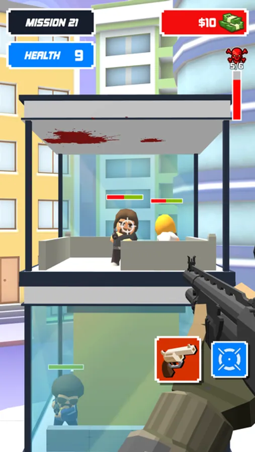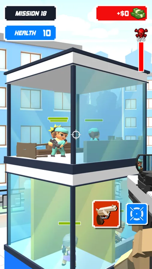 Aim & Shoot You don’t need to fuss with complicated control in the game. Just aim for the bad guys and shoot to kill them all!