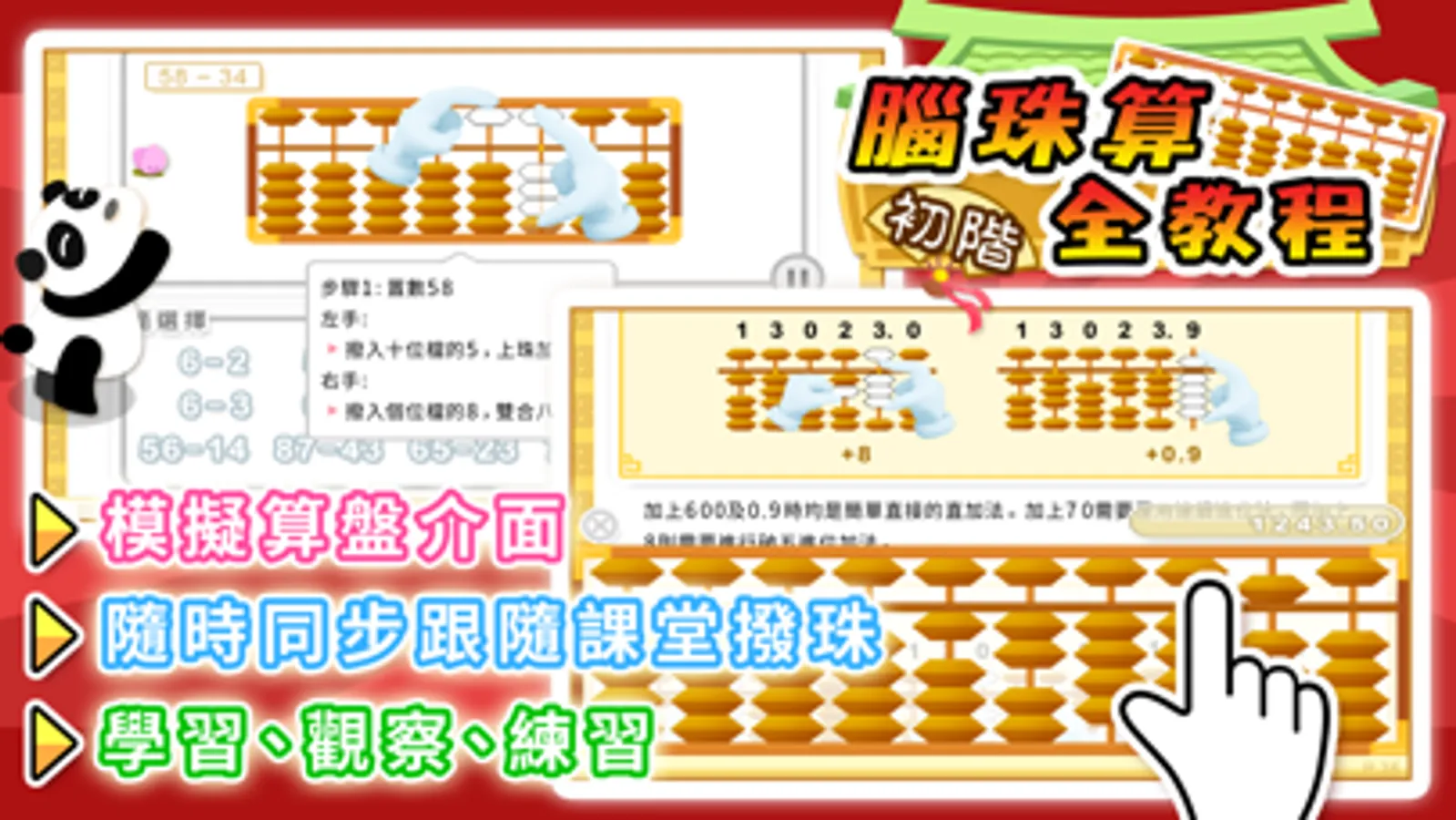 - 內建隨時同步練習的模擬算盤