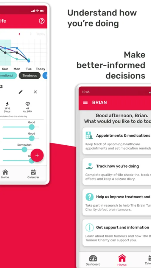 “I'm finding BRIAN very helpful. I can keep track of how I’m feeling and what appointments I've got coming up. The graph is really good as it shows your ups and downs.” – Helen, diagnosed with a brain tumour