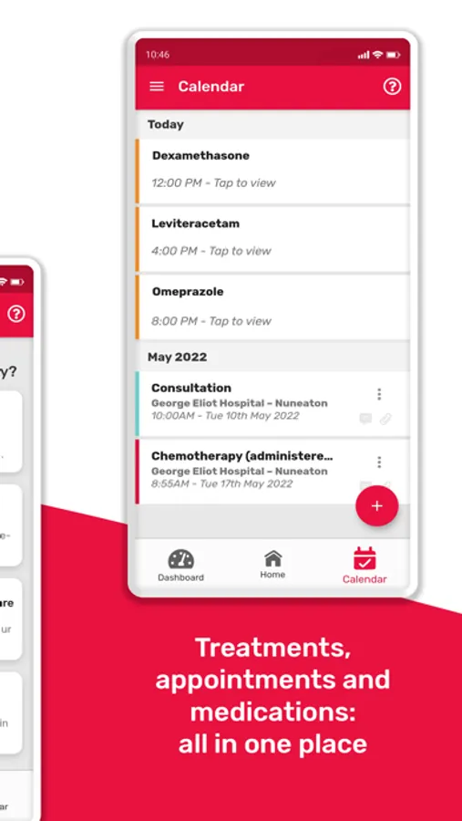 • Keep track of all your treatments, appointments and medications in one place.