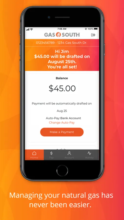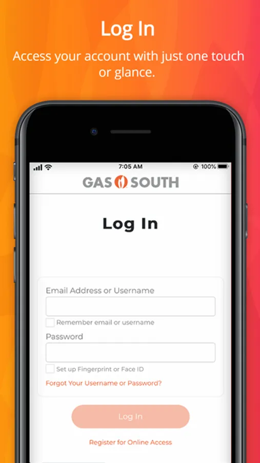 Conveniently access your Gas South account with face unlock and fingerprint recognition technology.