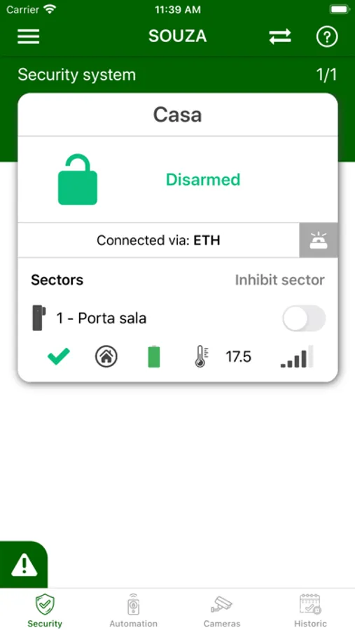 - Realizar ações como: Arme, Desarme, Arme Parcial, acompanhar o status de todos os sensores do sistema.