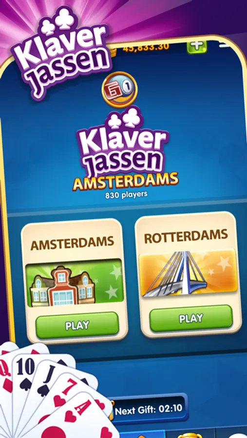 GamePoint Klaverjassen is the new mobile version from the web classic enjoyed by millions of players on Gamepoint.com. Already have an existing GamePoint account? Then log in with your existing account to come back online to your own friends and coin balance! Our card game provides modern graphics, smooth gameplay and a simple-to-use User interface to make sure you get the best playing experience possible!!