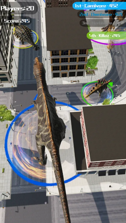 Are you ready to enter to this jurassic rampage io game? Here you can join to action with dinosaurs and eat other players if you are bigger than them. You have at your disposal all dinosaur city and you can run all over the map. Your target is a other dinosaurs, you must survive and be the last angry dino who stays on the big city and then you will be a winner the dino battle. Also, you can choose many types of your favorite hungry dino like t-rex and other dinosaurs. Join to action in one of the best battle io games and try this great dinosaur simulator now!