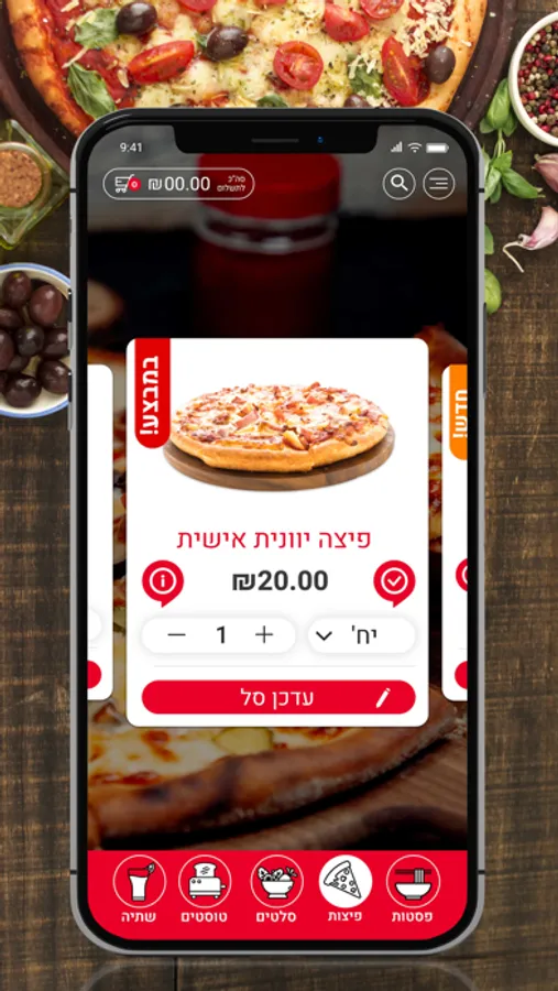 באפליקציה שלנו תוכלו להזמין פיצות, פסטות סלטים ועוד. מחכים לכם! בתאבון :)