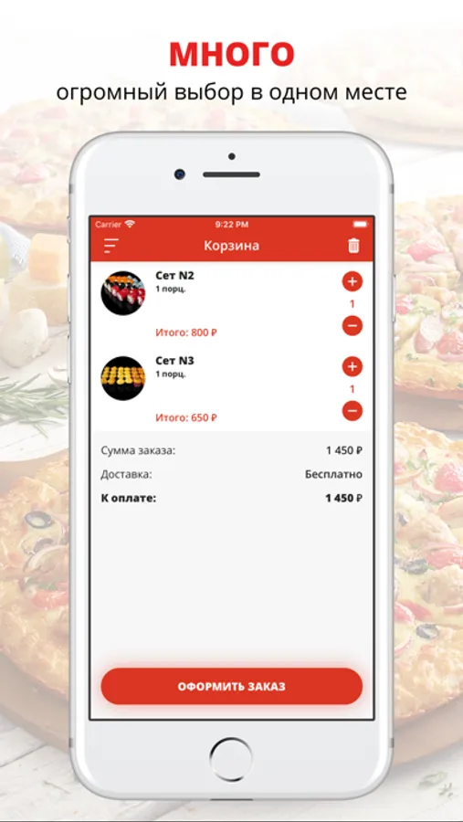 Вы сможете попробовать разнообразное меню, в которое входит пицца, роллы, супы, салаты, шашлыки, паста и многое другое.