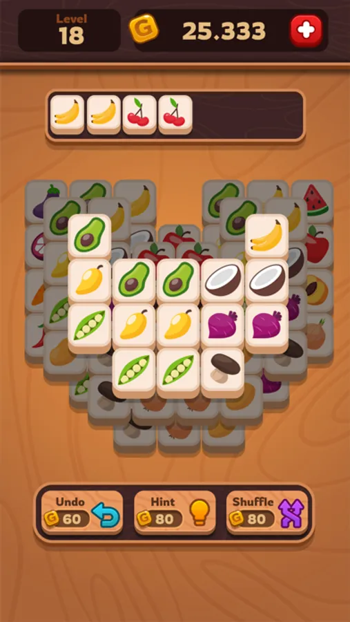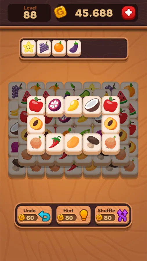 Tap on the squares on the table and place 3 identical squares on the scroll to eliminate them. After eliminating all the blocks on the top board, the level will complete! If there are more than 7 blocks on the top board, the level will over, you have to play again.